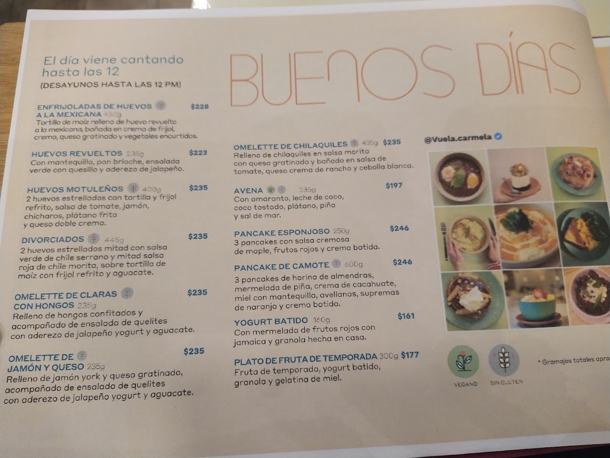 Vuela Carmela not only provides delicious meals like huevos divorciados and hearty chilaquiles with mole, but also portrays a welcoming ambiance that invites guests to savor their time. Next time you’re traveling through CDMX, detour to enjoy an exceptional meal at Vuela Carmela!